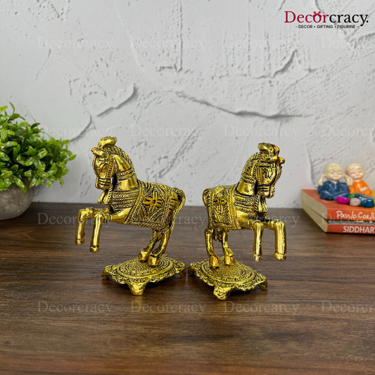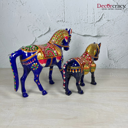 Horse 2Pc Metal Meenakari Art Hand Painted Animal Set Blue/Multi