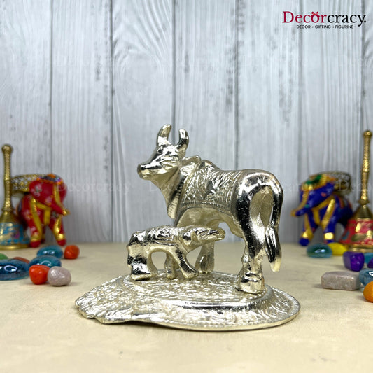 Kaamdhenu Guy Laxmi Ganesh incarved Metal silver Big