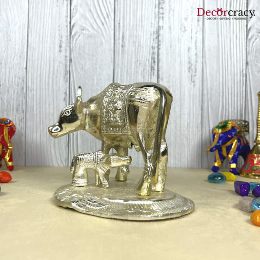 Kaamdhenu Guy Laxmi Ganesh incarved Metal silver Medium