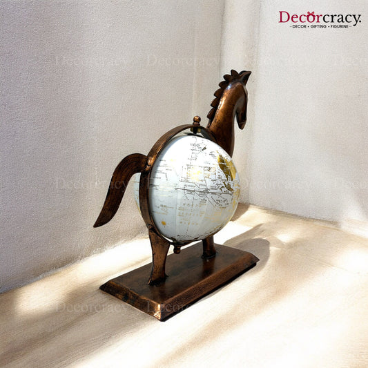 Horse Globe Copper Iron Showpiece Vintage Tribal Art TV Unit Décor Tabletop