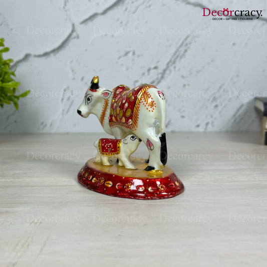 Kaamdhenu Guy Cow Pc Metal Meenakari Art Hand Painted Animal Set White/Multi