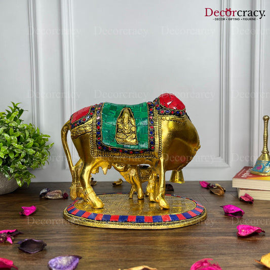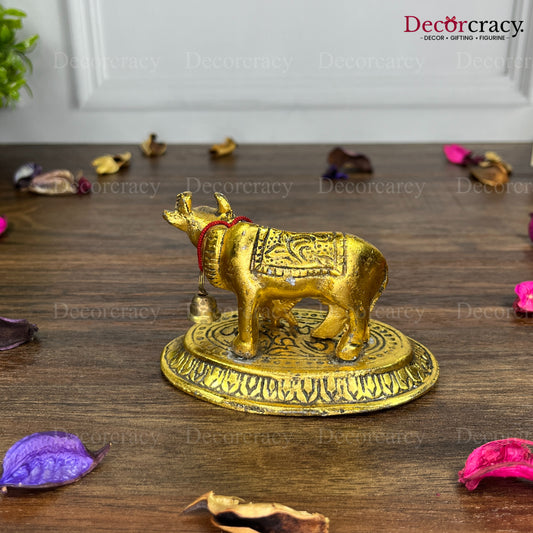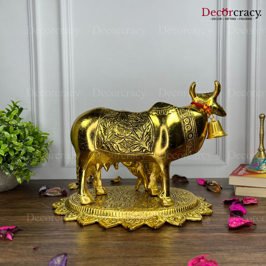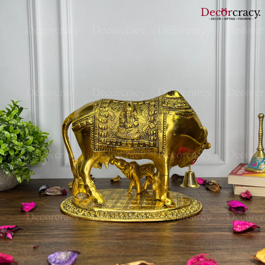 Kaamdhenu Guy Laxmi Ganesh incarved Metal golden