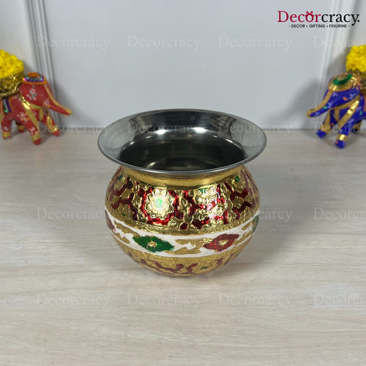 Kalash Lota Meenakari Steel Utensil Pooja Medium