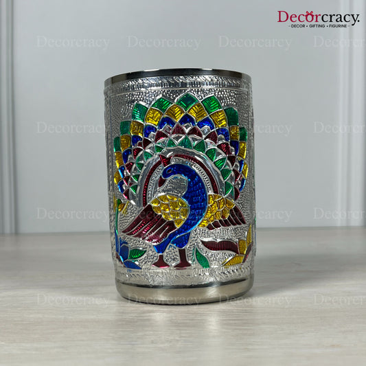 Glass Meenakari Stainless Steel Peacock Design Silver Utensil