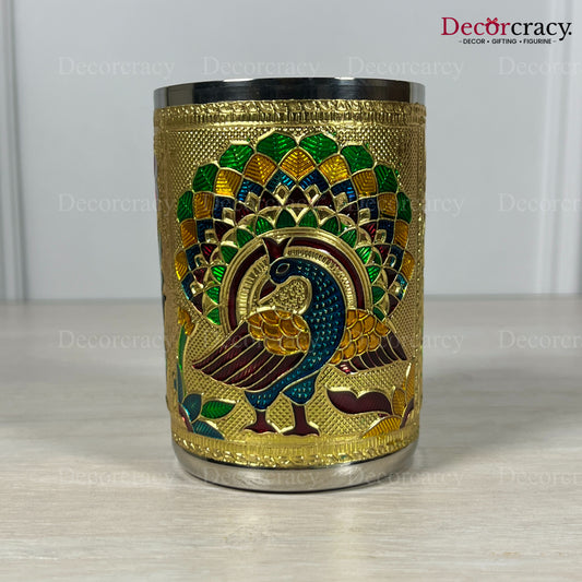 Glass Meenakari Stainless Steel Peacock Design Golden Utensil