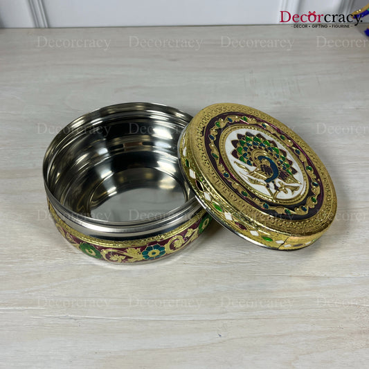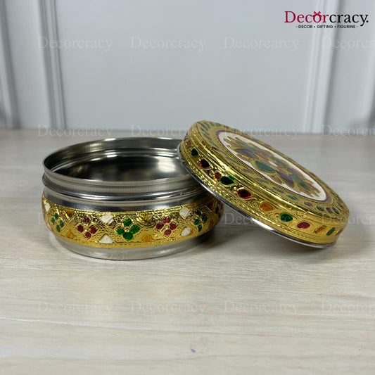 Dabba Box Meenakari Stainless Steel Golden Utensil 4"