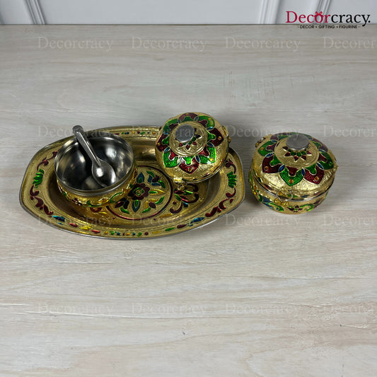 Mukhwas Dry Fruit Storage Meenakari Stainless Steel Golden Utensil