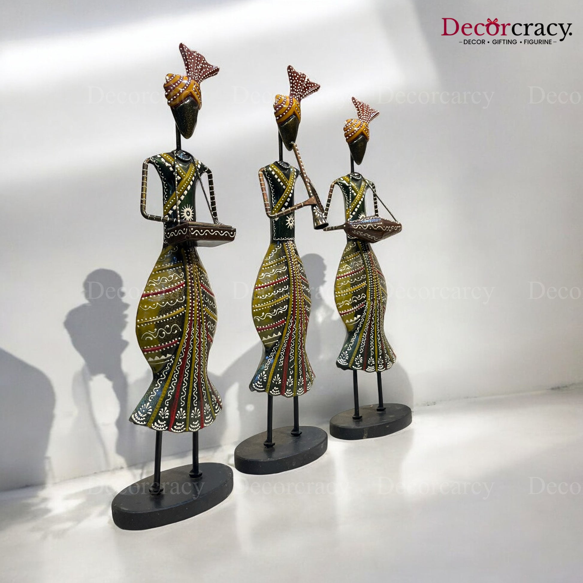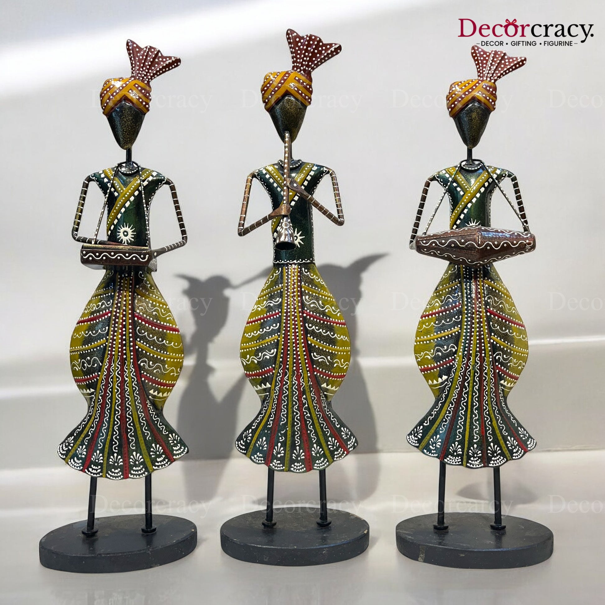 A delightful set of three baarat musician showpieces, perfect for adding a touch of traditional art to your TV unit or tabletop.