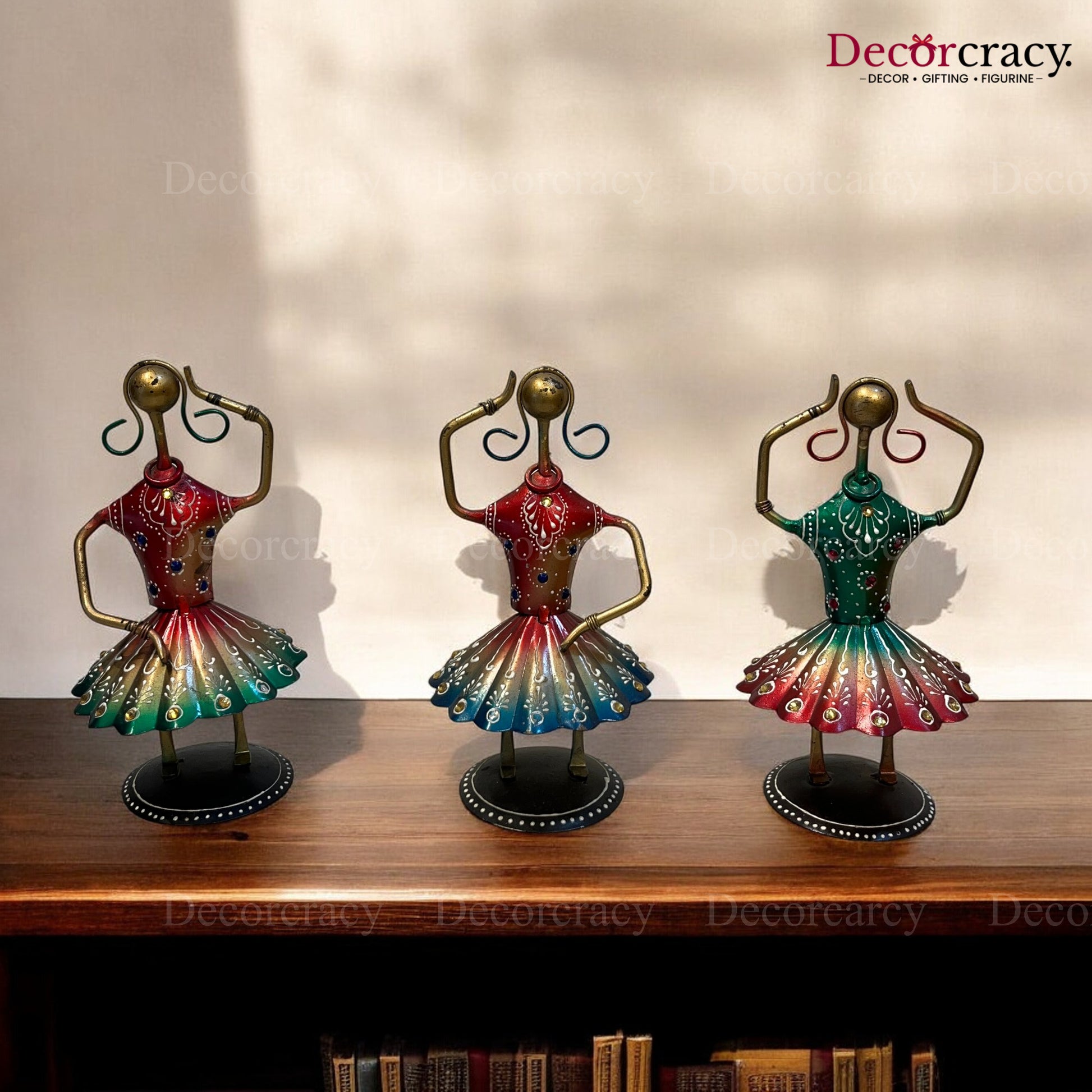 3pc Ladies Dancing Iron Showpieces Tribal Art Musical Instrument TV Unit Décor Tabletop