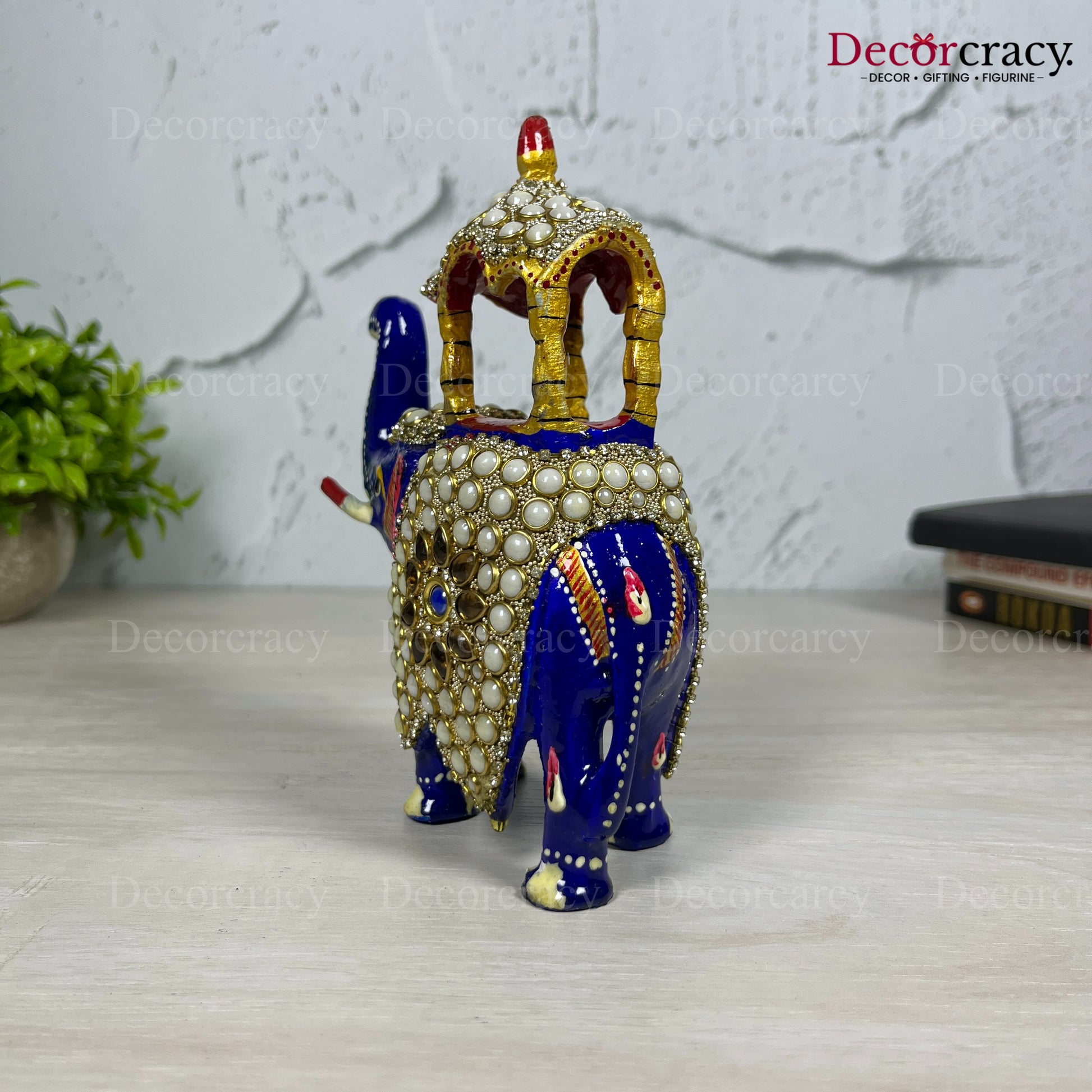 Elephant Ambabari Stone 1Pc Metal Meenakari Art Hand Painted Animal Set Blue/Multi Large