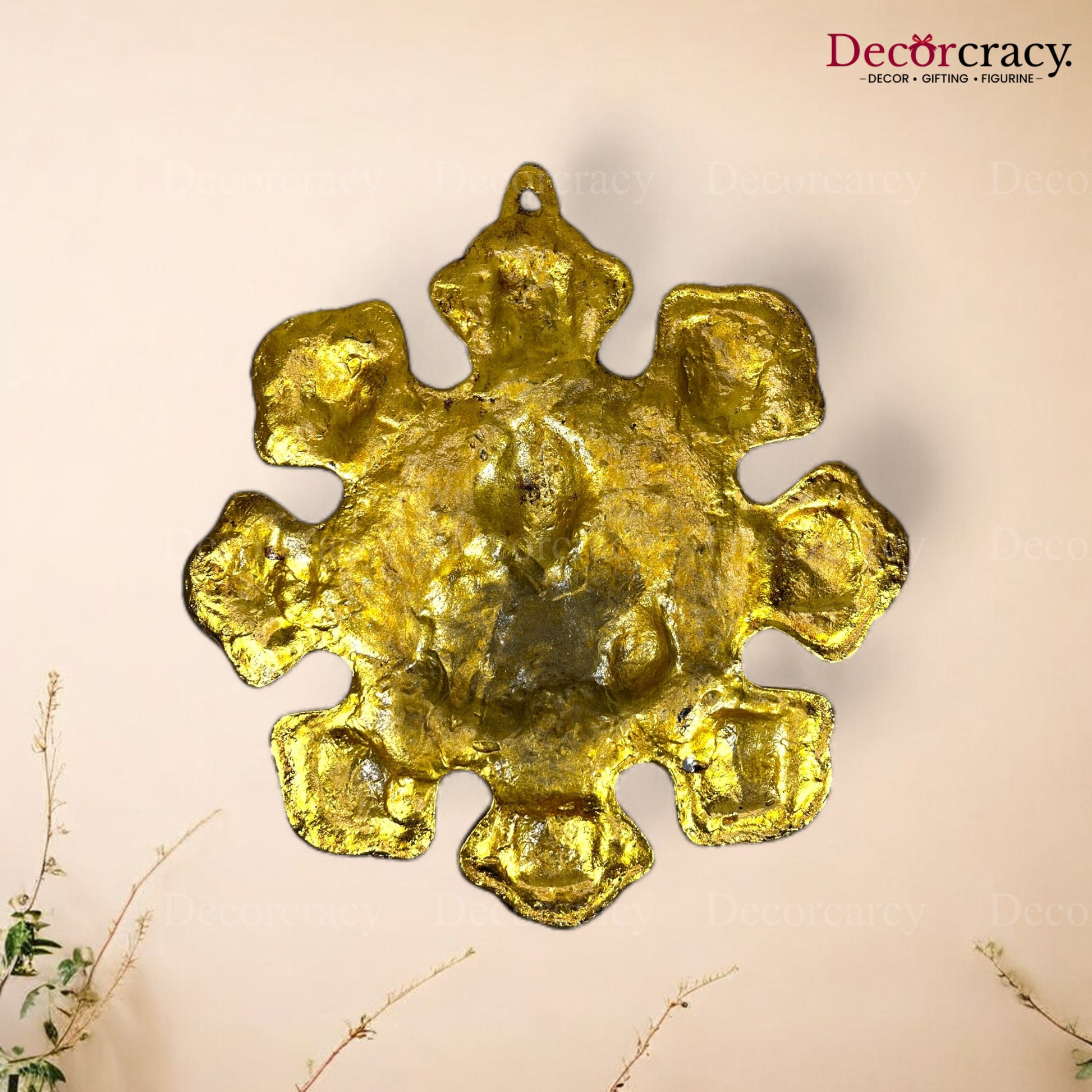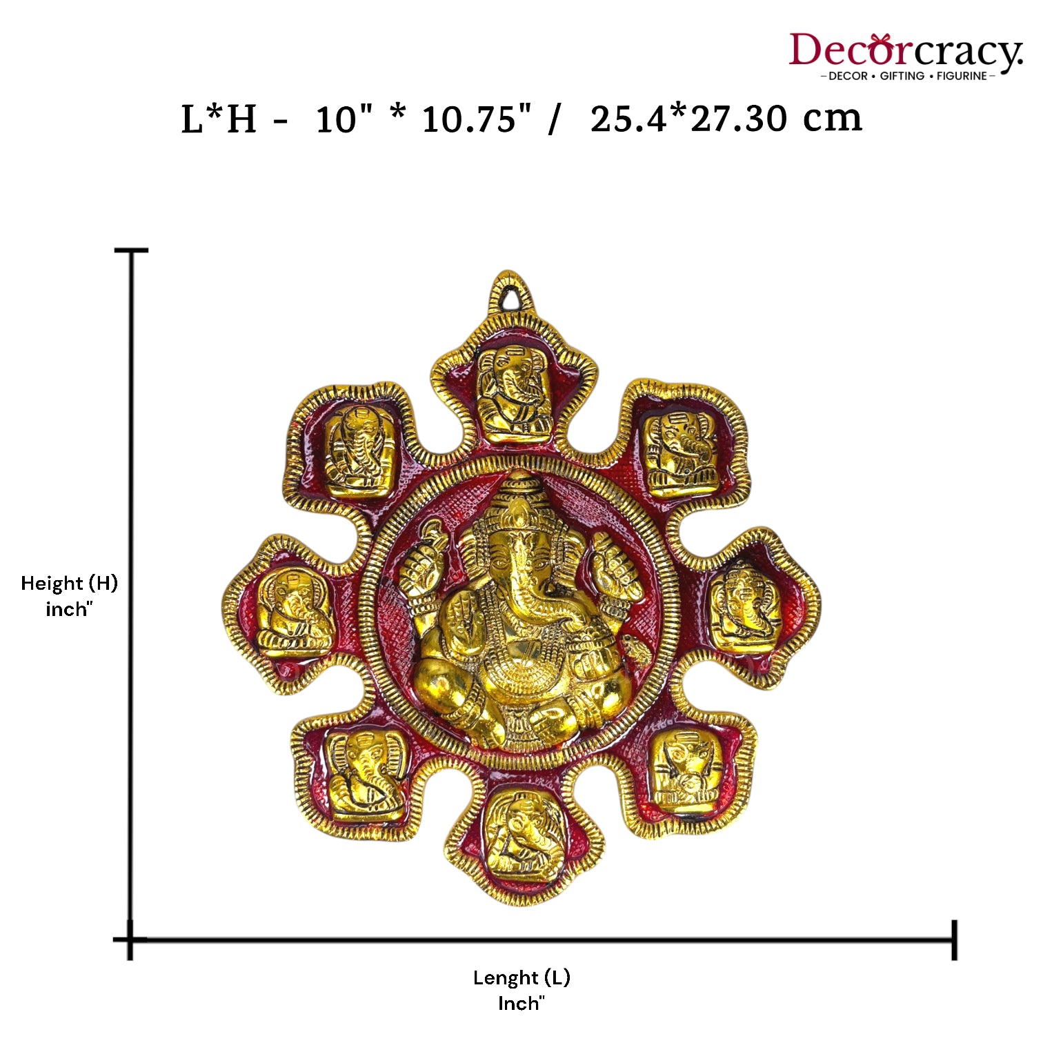 A MultiColour metal wall hanging depicting Lord Ganesha with the 9 Grah (planets), used for Vastu and astrological purposes.