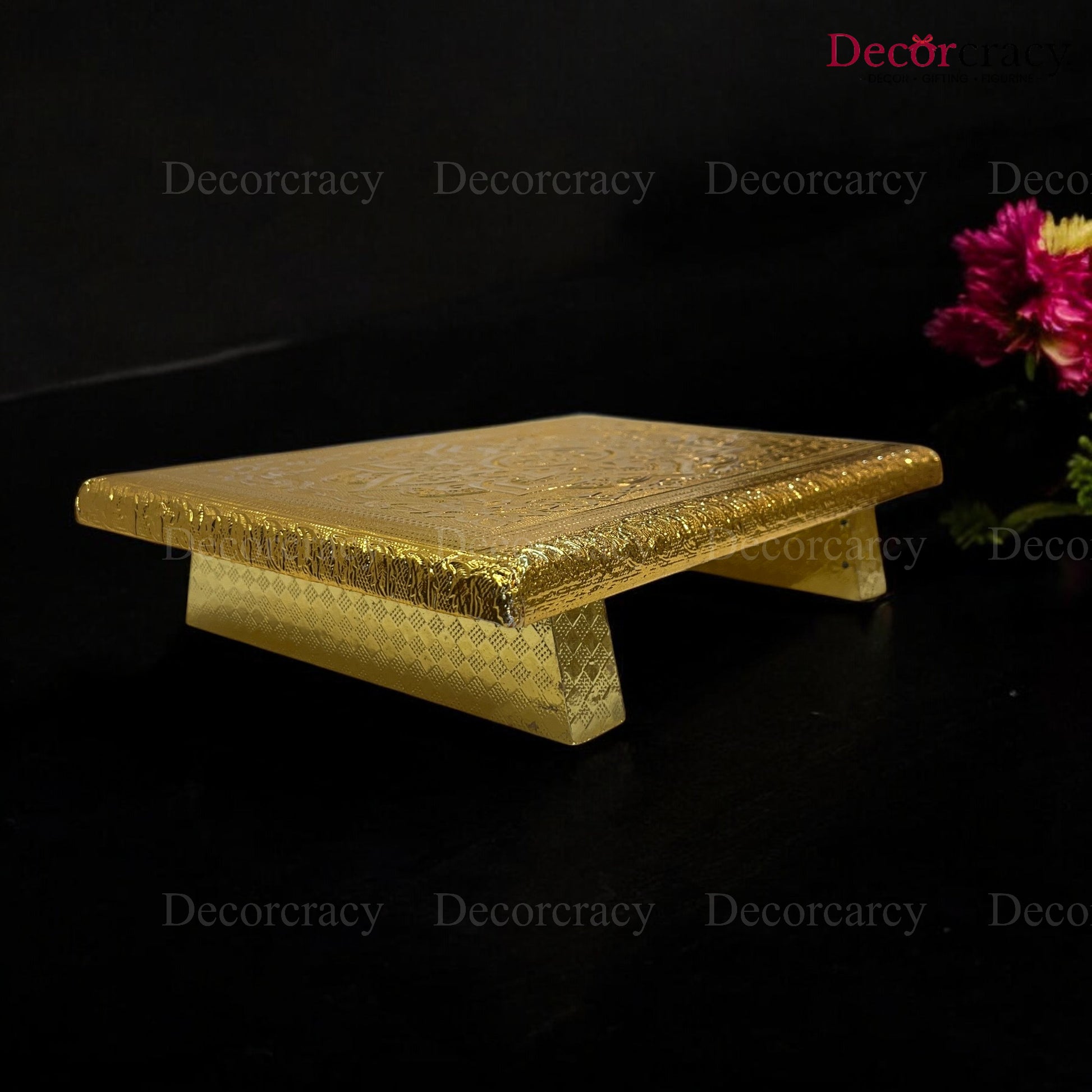 Rajwadi Patla Chowki for Pooja 8*12" Wooden Golden