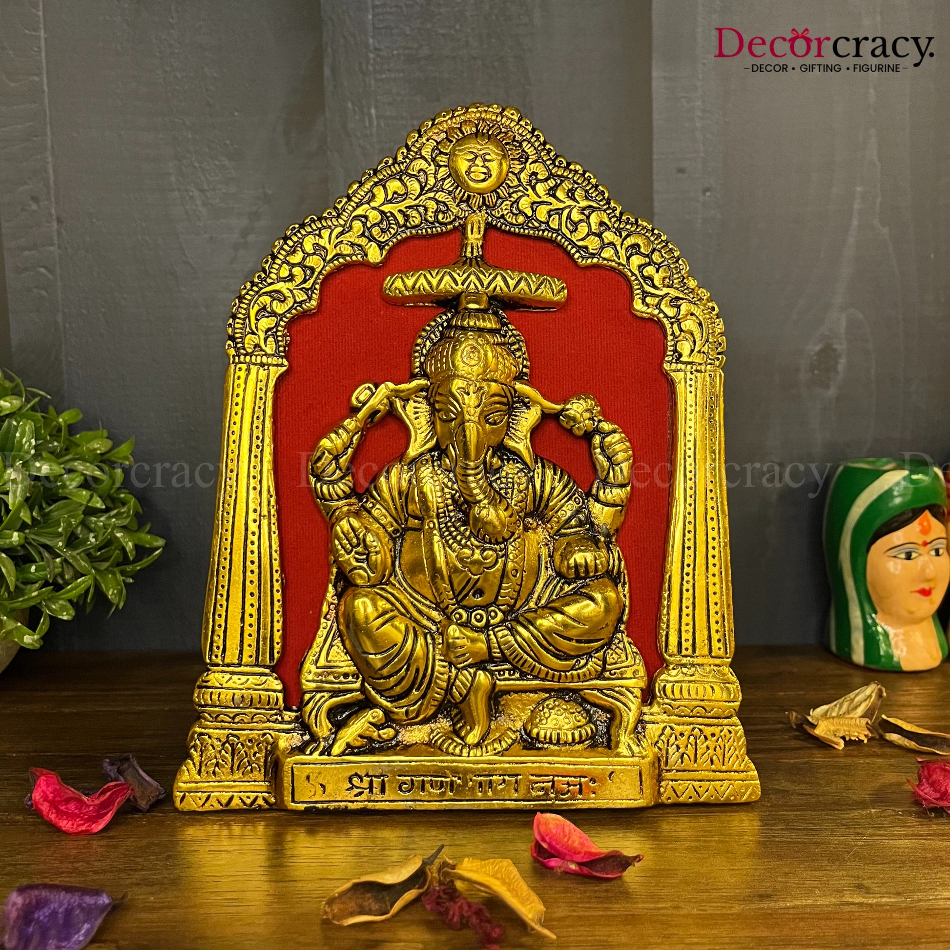 Shree Ganesh Frame Wall Hanging Metal Golden