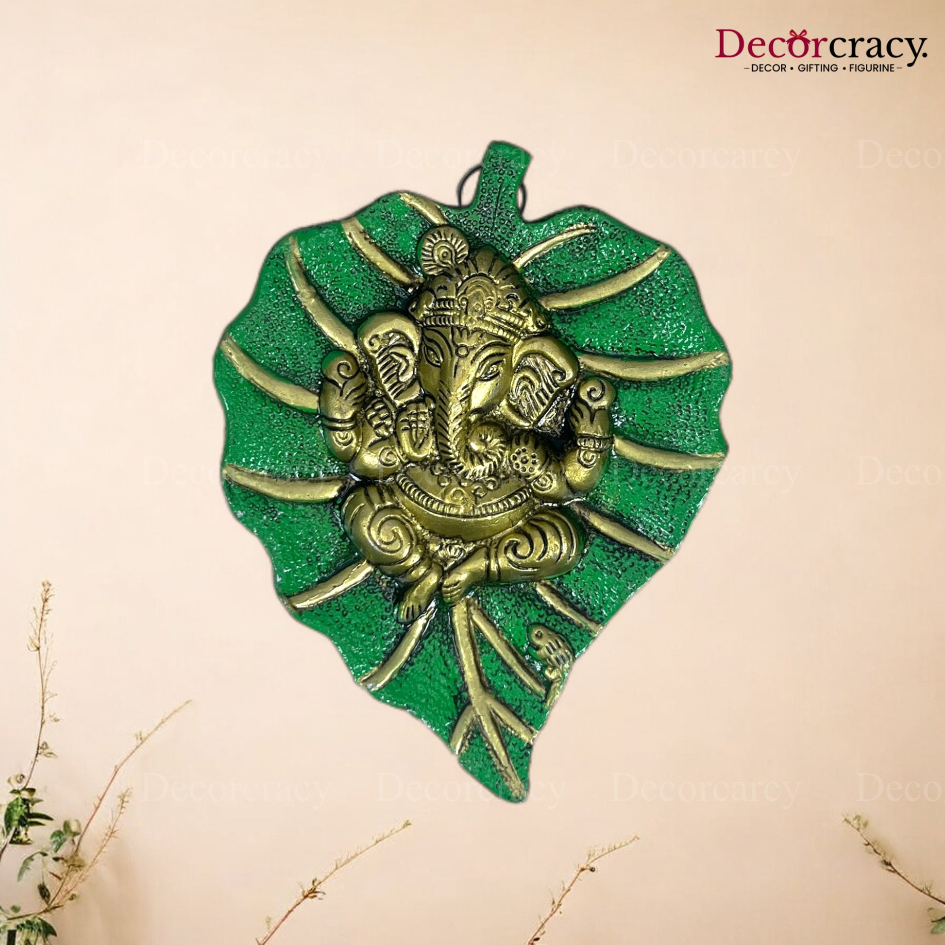 A colorful MultiColour leaf-shaped wall hanging featuring Lord Ganesha, bringing divine energy and prosperity to your space.