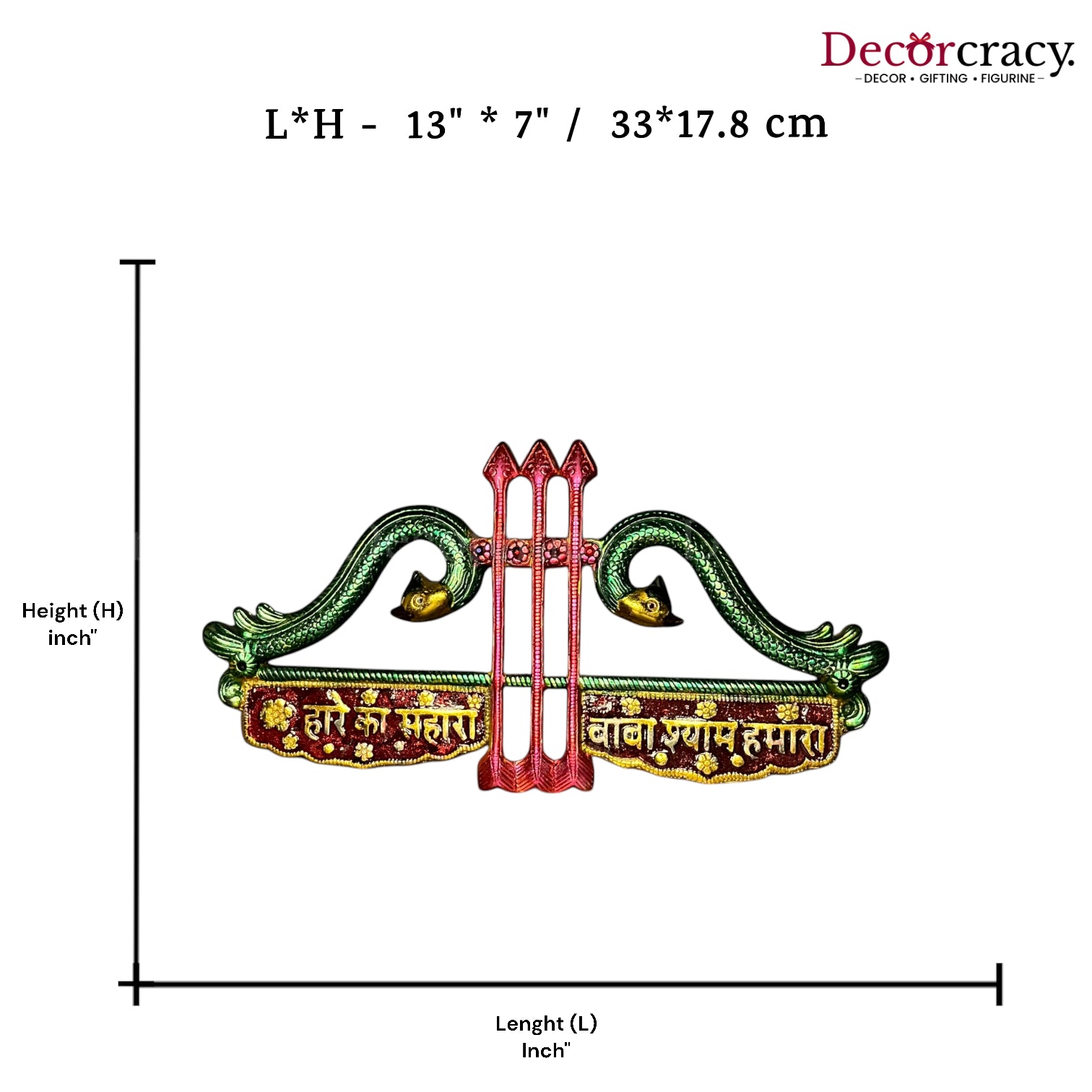 This elegant wall hanging showcases Shree Khatu Shyam's 3 Baan Nishan, symbolizing blessings and protection. Perfect for entrances or as a gift for inaugurations and spiritual occasions.